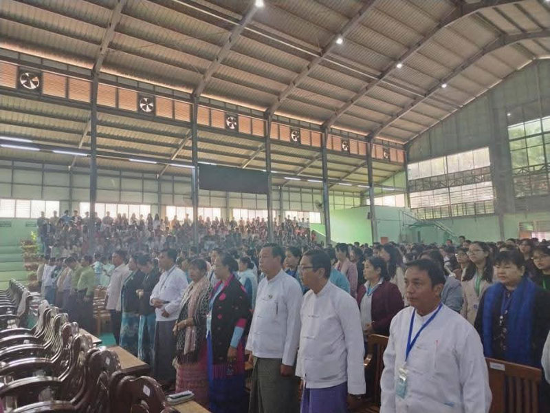 ပထမဦးစွာ အခမ်းအနားစတင်ကြောင်းကြေညာပြီးသည့်နောက်တွင် နိုင်ငံတော်အလံအား အလေးပြုခဲ့ကြပါသည်။